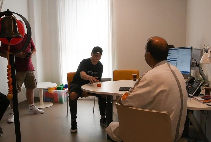 En dan is ie daar! 15 augustus, de dag waarop Nienke de bel mag luiden. Het is spannend, want Nienke moet eerst nog een MRI scan ondergaan. En ook al zegt de oncoloog dat hij daaruit geen gekke uitslagen verwacht, toch blijven we onzeker, ook Nienke. Helaas zullen we de uitslag van de scan ook pas een dag later horen. Toch proberen we van deze dag te genieten. Als Nienke klaar is met de scan hebben beide opa's en oma's zich al gemeld in het Máxima. En twee vriendinnen van Nienke zijn van de partij. De opa's en oma’s zijn hier voor het eerst. De rondleiding, onder andere op de dagbehandeling waar Nienke haar chemo’s kreeg, maakt indruk...