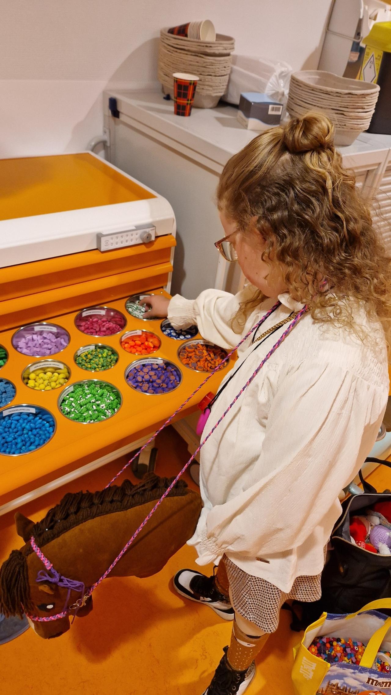 Dan is het tijd voor het uitzoeken van de kralen voor aan je Kanjerketting. Elke dag ‘moet’ jij thuis stomme dingen; vernevelen, meerdere keren oogdruppels, medicatie tegen de tumor, aan de beademing liggen met slapen. Je hebt meerdere keren in de week therapie, waaronder fysiotherapie. Samen hebben wij afgesproken dat je bij elke controle één kraal kiest voor al deze stomme dingen, anders wordt de Kanjerketting wel heel lang. Daarnaast krijg je de kraal voor het verwisselen van je PEG sonde (maagsonde) en de kralen voor alle onderzoeken van deze dag.