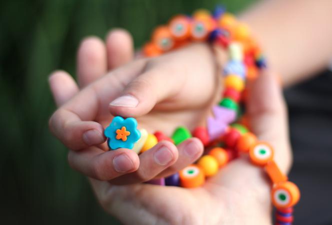 Kinderen met kanker rijgen deze Kanjerkralen aan een ketting.